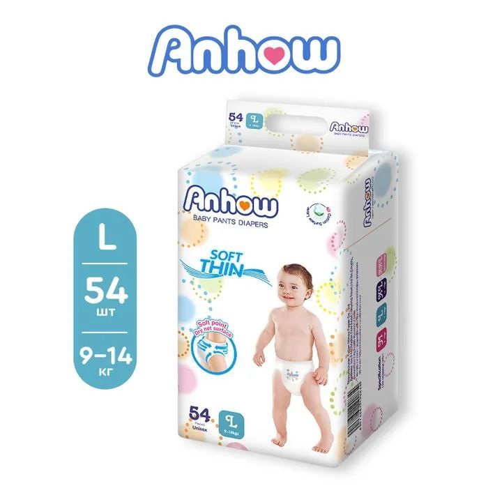 ANHOW Подгузники-трусики детские L (9-14кг ), 54 шт