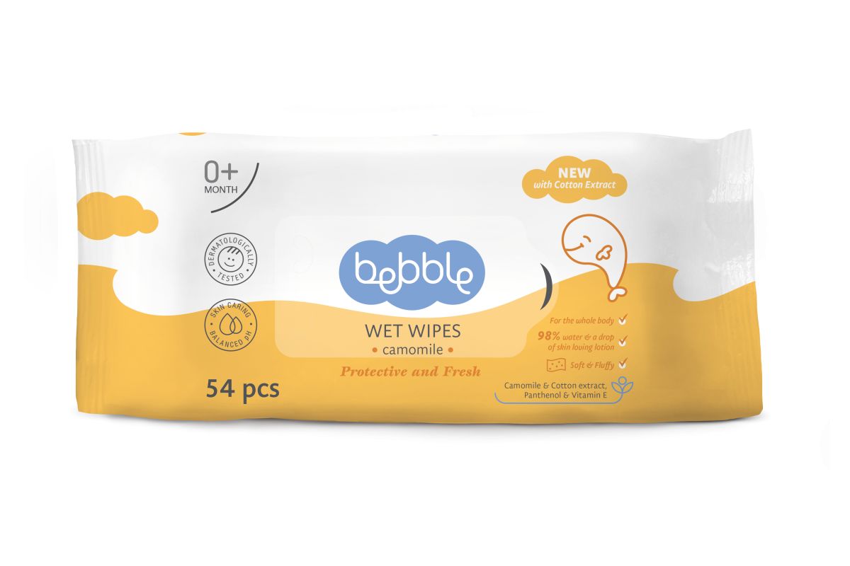 Бархатистые влажные салфетки очищают кожу малыша, не иссушая ее. Пропитаны специально разработанным лосьоном, содержащим 98% очищенной воды и 2%  благоприятными для кожи ингредиентами: защитный и антисептический экстракт ромашки; экстракт хлопка со смягчающими свойствами; пантенол с увлажняющим эффектом; витамин Е с питательным действием. Мягкая и воздушная текстура салфеток заботится о нежной коже младенца. Не содержат спирта, подходят для ежедневного применения, особенно при смене подгузника.