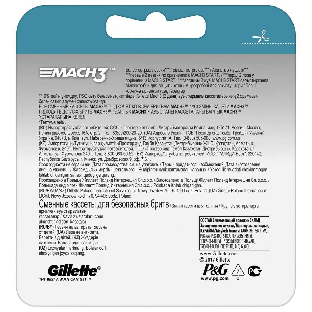 • Сменные кассеты для мужской бритвы Gillette «Mach3» оснащены лезвиями прочнее, чем сталь, которые дольше сохраняют остроту (по сравнению с Sensor3)._• Каждая сменная кассета рассчитана на 15 процедур комфортного бритья._• Бритва оснащена более острыми лезвиями (первые 2 лезвия по сравнению с Sensor3)._• Смазывающая полоска скользит по коже, предотвращая ее покраснение._• Усовершенствованный микрогребень Skin Guard помогает натянуть кожу и подготовить волоски к срезанию._• Подходит к любым бритвам серии Mach3.__Состав:_PEG-115M, PEG-7M, PEG-100, Silica, Paraffinum Liquidum, Tocopheryl Acetate, Pentaerythrityl Tetra-Di-T-Butyl Hydroxyhydrocinnamate, Tris(Di-T-Butyl)Phosphite, Aloe Barbadensis Leaf Juice, BHT, Glycol.
