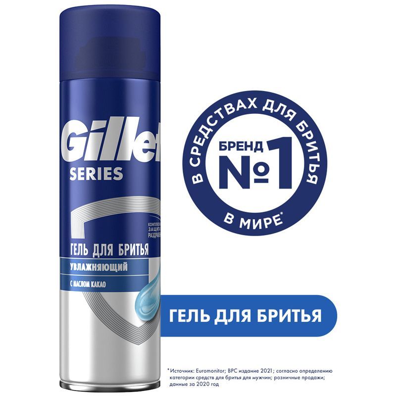 Мужской гель для бритья Gillette Series Увлажняющий обеспечивает невероятно гладкое бритье. Почувствуйте увлажняющую силу геля для бритья Gillette Series с маслом какао, который обеспечивает полную защиту от раздражения после бритья, помогая уменьшить порезы, покраснение, жжение и стянутость.