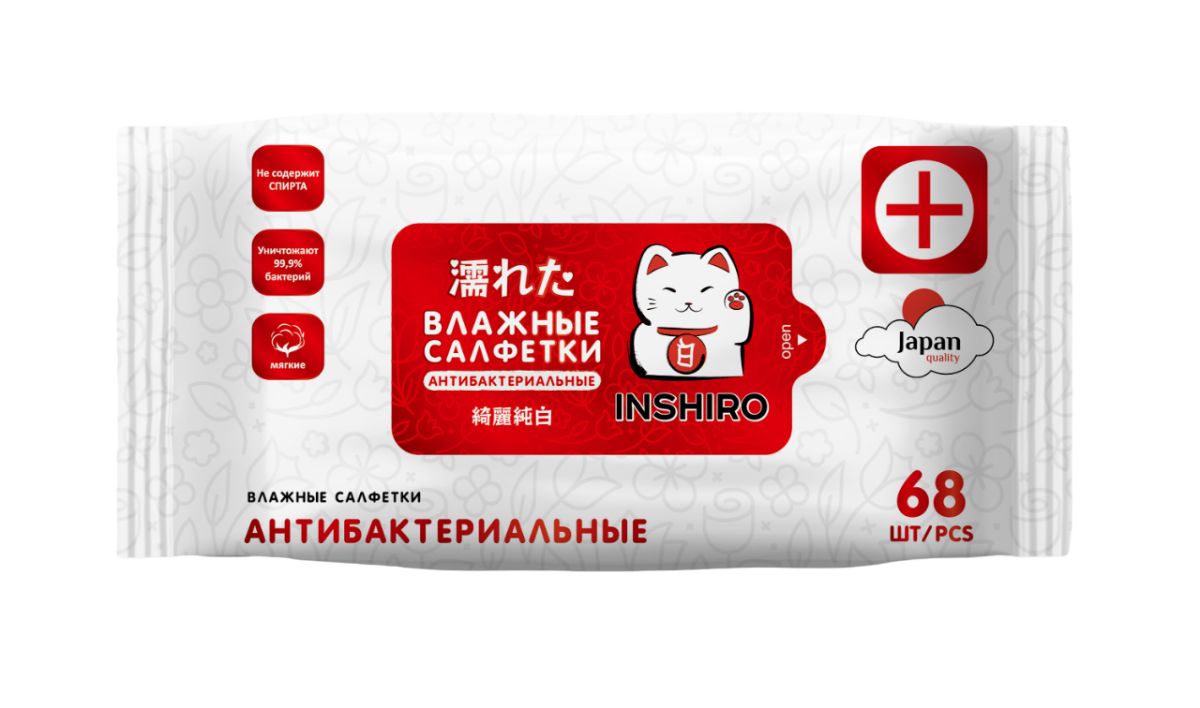 INSHIRO Салфетки влажные антибактериальные 68 шт/упак.1/32 SF631