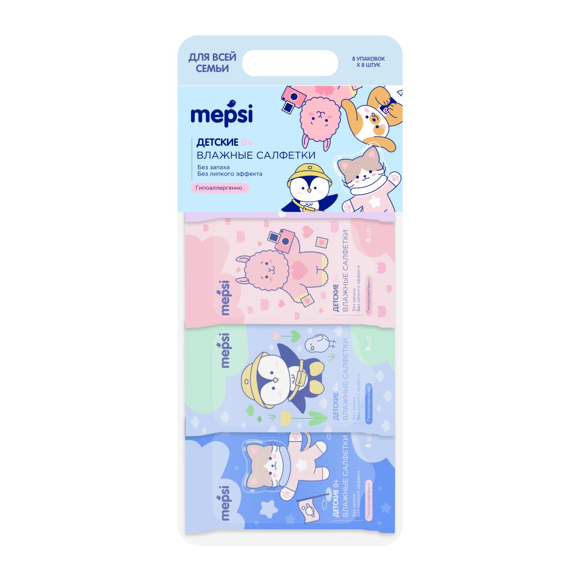 MEPSI Салфетки влажные детские без отдушки 64шт (8х8шт) 1/12