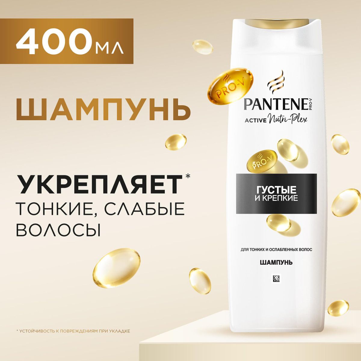 Шампунь 400 мл, PANTENE (Пантин) «Густые и крепкие», для тонких и ослабленных волос, PT-81471253