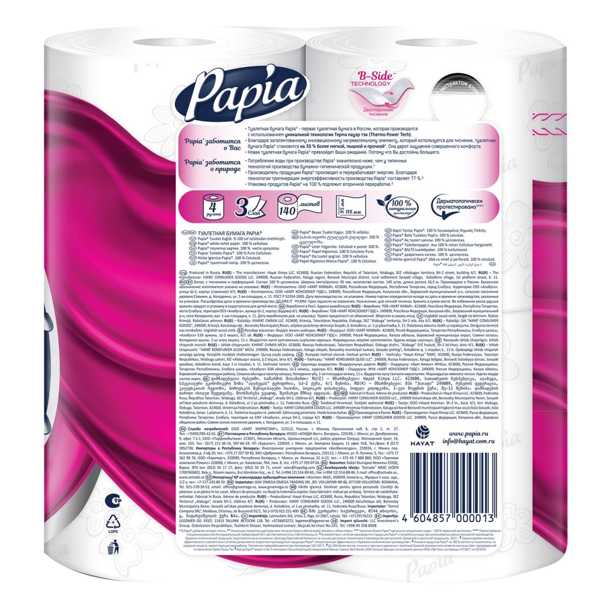 Бумага туалетная бытовая, спайка 4 шт., 3-слойная (4 х 16,8 м), PAPIA, белая, 5058528