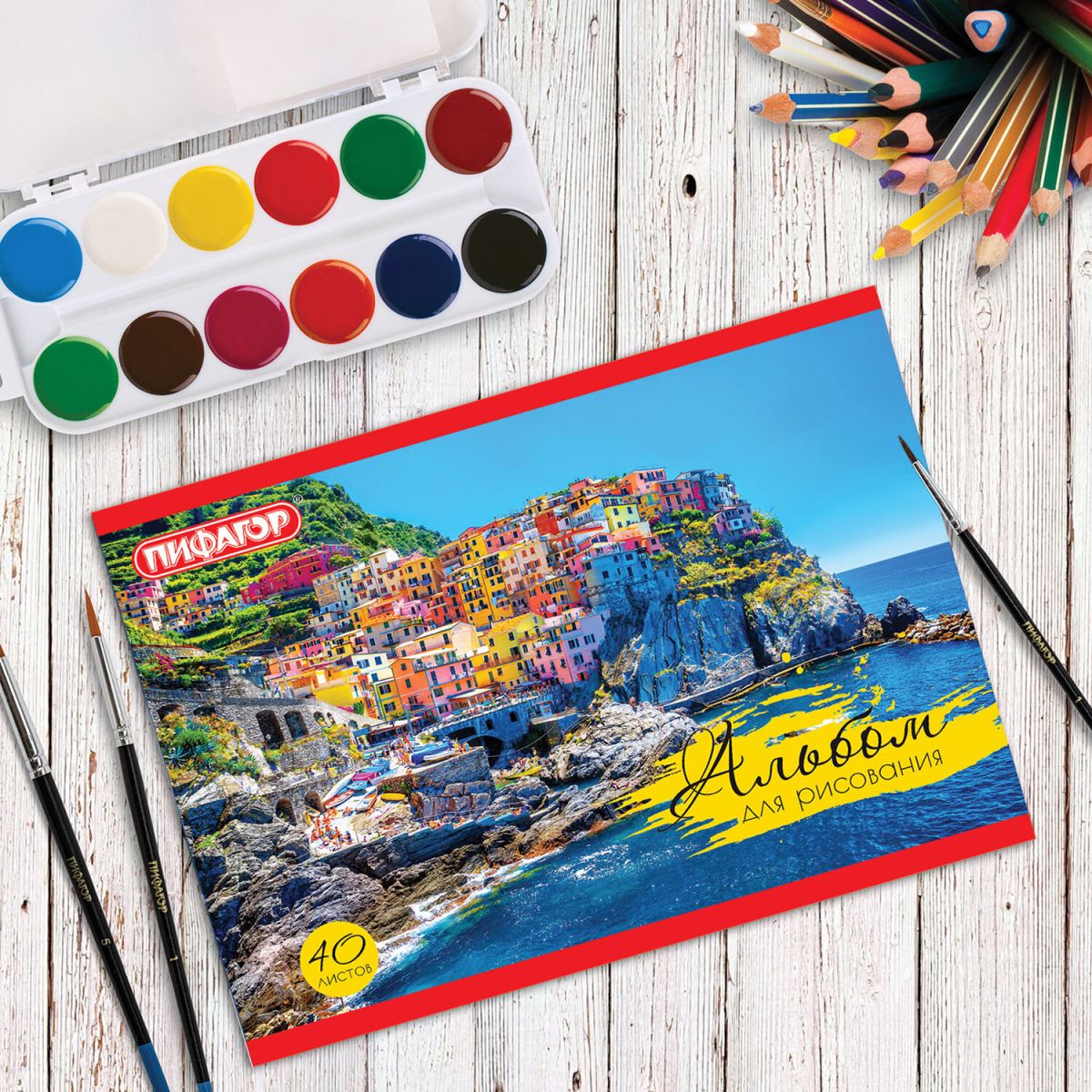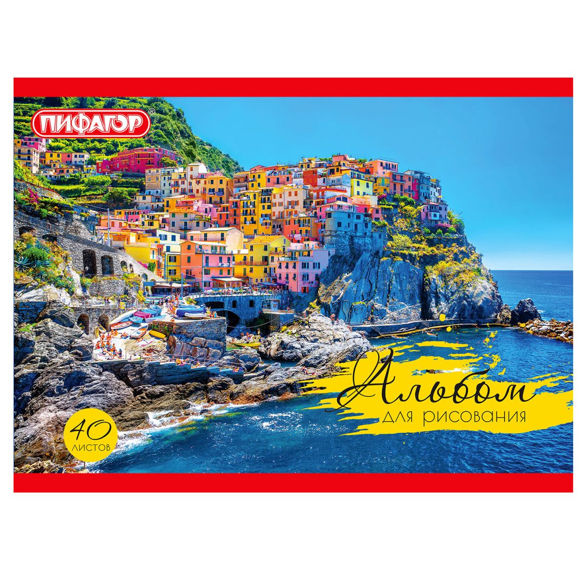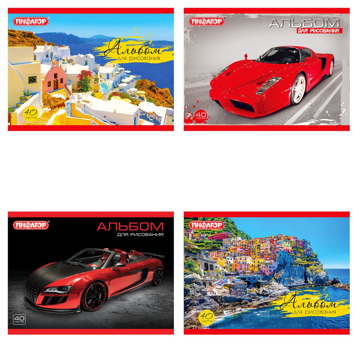 Альбом для рисования МАЛЫЙ ФОРМАТ А5, 40 л., скоба, обложка офсет, ПИФАГОР, 200х148 мм, «Авто/Путешествие» (4 вида), 103724