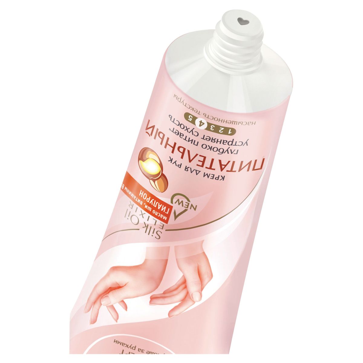 Формула Silk Oil Elixir усилена гиалуроном для глубокого питания кожи после контакта с водой. Кожа рук нежная для ласковых прикосновений и бесценных моментов. __Микромасла восстанавливают клетки кожи и в комплексе с протеинами шелка делают ее мягкой и нежной. Использование дневного и ночного крема повышает эффективность ухода в 2 раза. Днем крем питает и защищает кожу от потери влаги, а специальный ночной крем обеспечивает кожу рук питательными веществами для интенсивного восстановления ночью. __Формула Silk Oil Elexir представляет собой комплекс, состоящий из микромасел и протеинов шелка. Благодаря своему размеру (до 10 мкм), эти частицы масел способны проникать внутрь эпидермиса, не нарушая липидный барьер, и доставлять питательные вещества клеточкам кожи. __ГИАЛУРОН сохраняет влагу в коже, устраняя сухость и стянутость. С годами мы теряем возможность воспроизводства кожей гиалуроновой кислоты, а нанесение средств с гиалуроновой кислотой помогает поддержать увлажнение верхнего слоя кожи. Важным плюсом гиалуроновой кислоты является её гипоаллергенность.__МАСЛО ШИ питает и восстанавливает клетки кожи. Оказывает смягчающее, увлажняющее и защитное действие. Подходит для ухода за кожей любого типа, особенно за сухой, раздраженной, поврежденной. Масло замедляет старение кожи.__МАСЛО АВОКАДО замедляет старение кожи и предотвращает появление морщин. Питает кожу, способствует восстановлению ее защитного, иммунного барьера. Стимулирует выработку организмом коллагена и ускоряет процесс регенерации клеток кожи.__ГЛИЦЕРИН оказывает смягчающее действие на кожу, увлажняет ее. Небольшие по размеру молекулы глицерина способны преодолевать липидный барьер кожи и проникать в глубокие слои эпидермиса. Исследования показали, что глицерин способствует нормальному процессу жизнедеятельности клеток эпидермиса.__Крем обладает приятной насыщенной текстурой, быстро впитывается и не оставляет липкой пленки