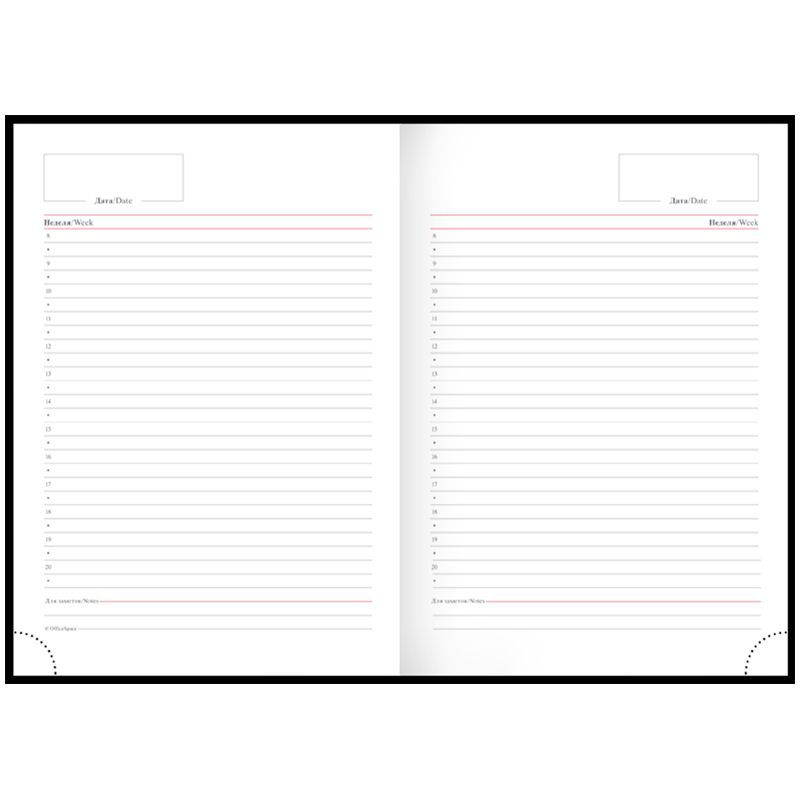 Перфорированные уголки и закладка-ляссе сделают комфортным использование ежедневника. Внутри есть географические карты России и мира, а также различные справочные материалы. Недатированный ежедневник OfficeSpace отлично подходит под персонализацию.