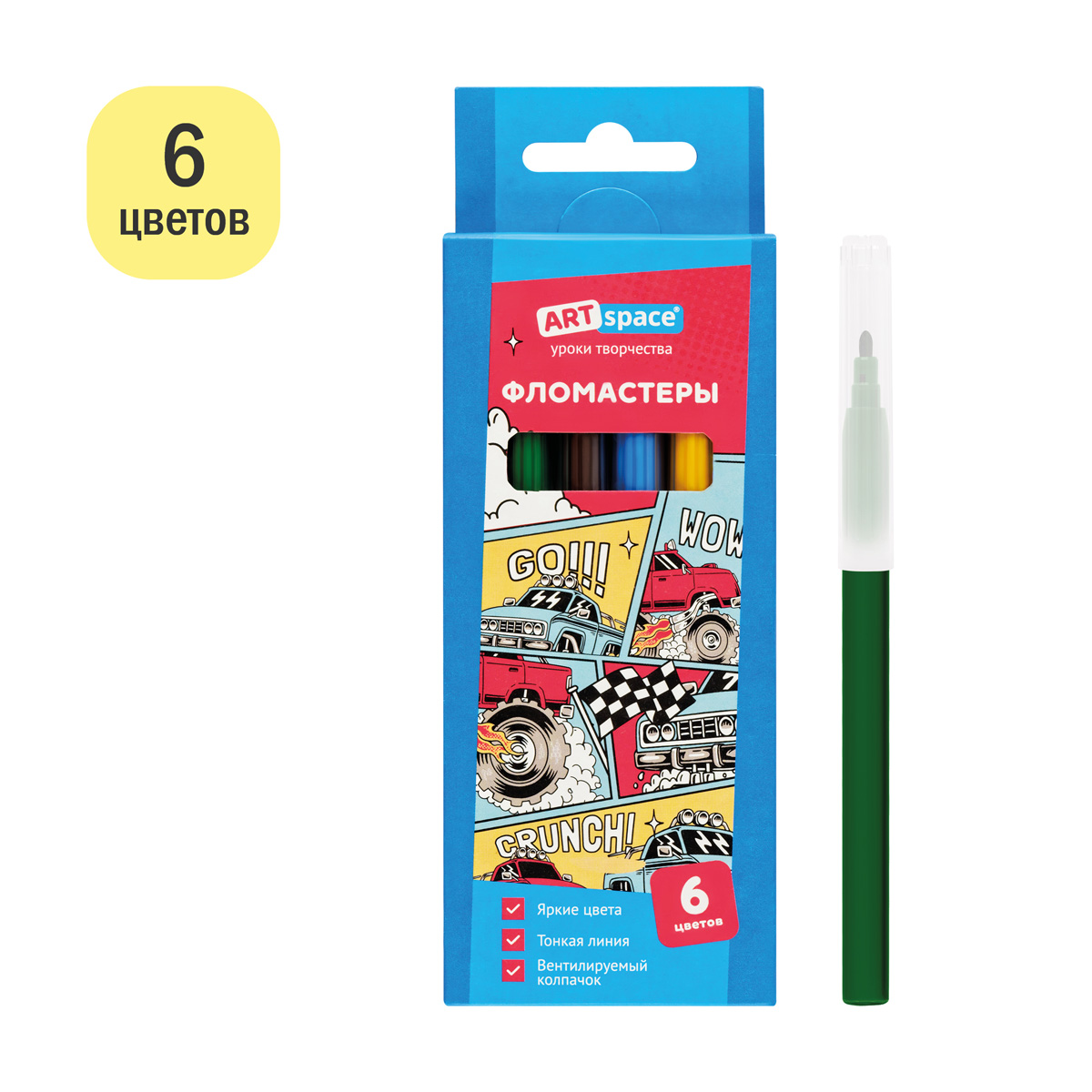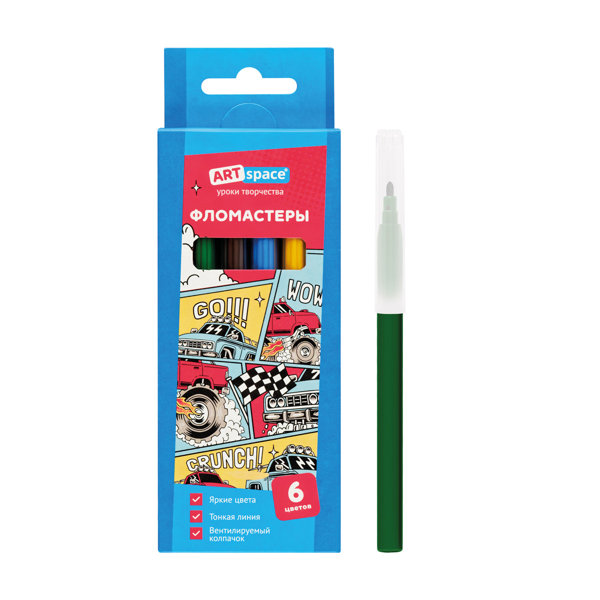 Фломастеры ArtSpace «Машинки», 06цв., картон, смываемые, европодвес WP_92249