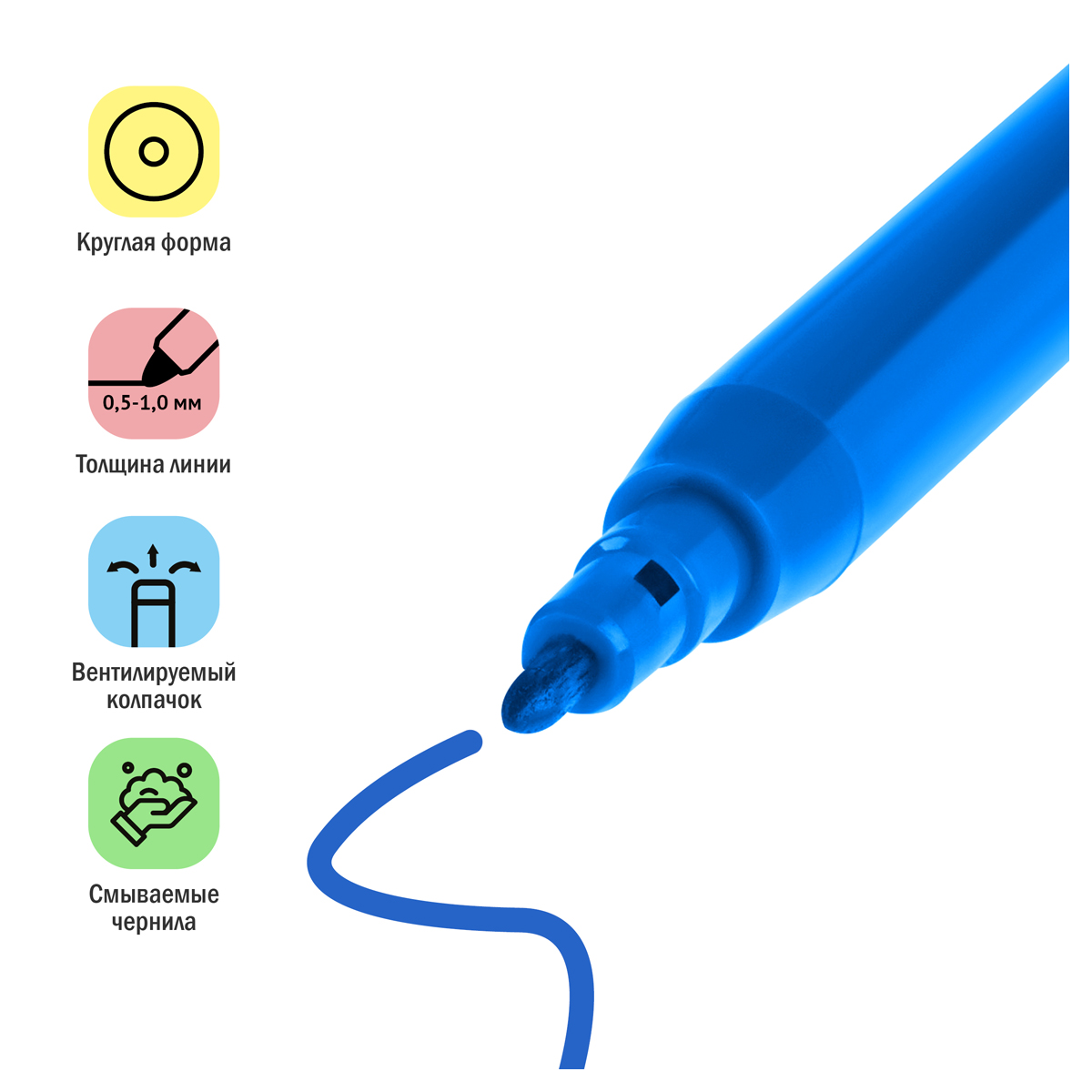 Фломастеры ArtSpace серии «Рисунки. Lovely animals» представлены с легкосмываемыми чернилами и вентилируемым прозрачным колпачком. Толщина линии письма составляет 0,5-1,0 мм. В наборе 6 ярких цветов. Тип наконечника – конический. Смываемые фломастеры на водной основе нетоксичны. Набор фломастеров упакован в яркую картонную коробку с европодвесом.