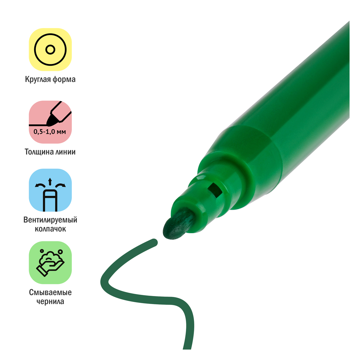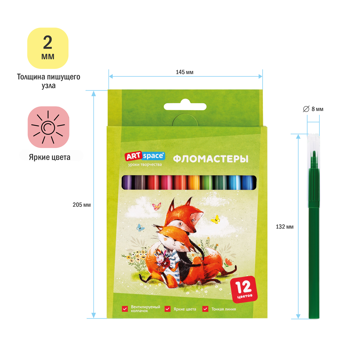 Фломастеры ArtSpace серии «Рисунки. Lovely animals» представлены с легкосмываемыми чернилами и вентилируемым прозрачным колпачком. Толщина линии письма составляет 0,5-1,0 мм. В наборе 12 ярких цветов. Тип наконечника – конический. Смываемые фломастеры на водной основе нетоксичны. Набор фломастеров упакован в яркую картонную коробку с европодвесом.