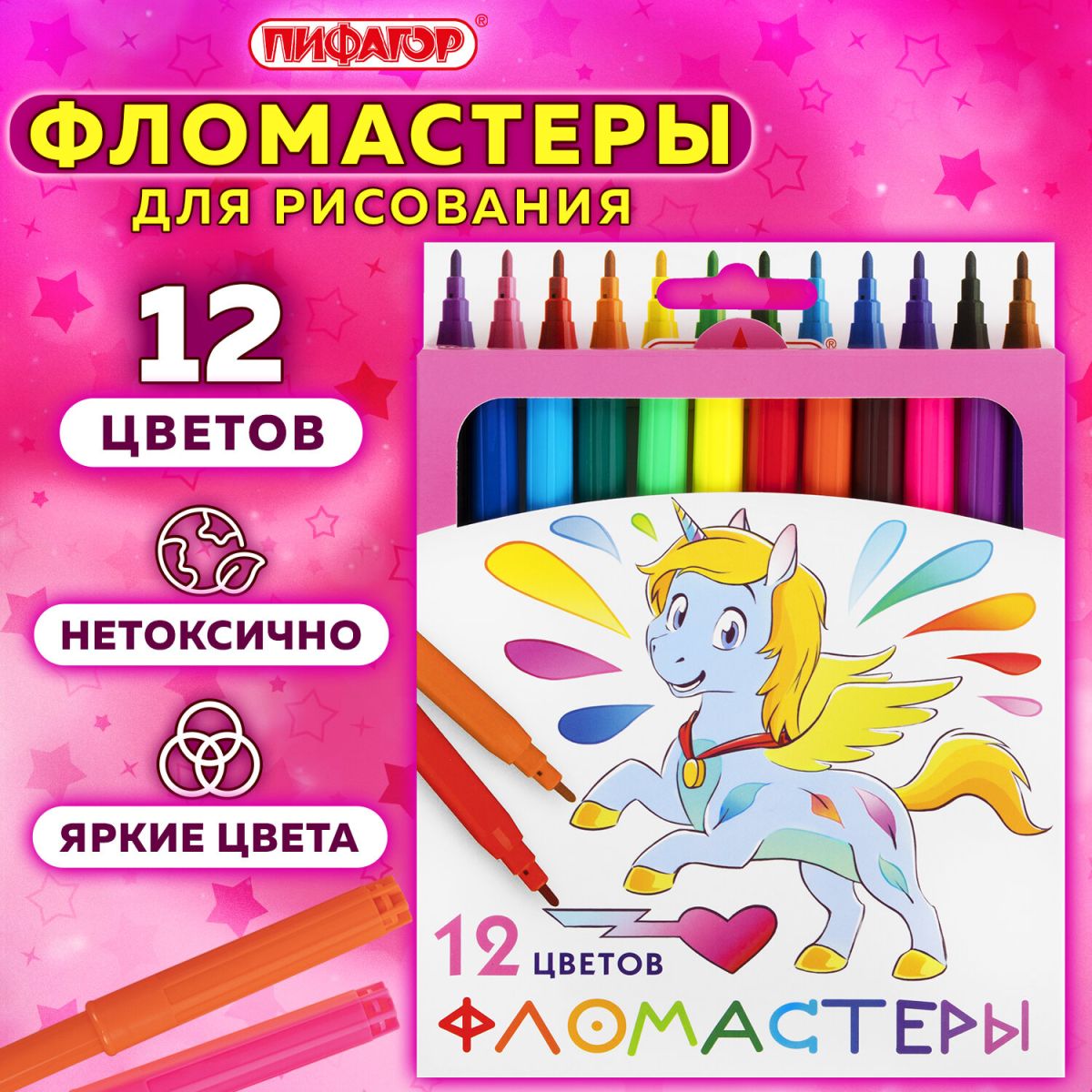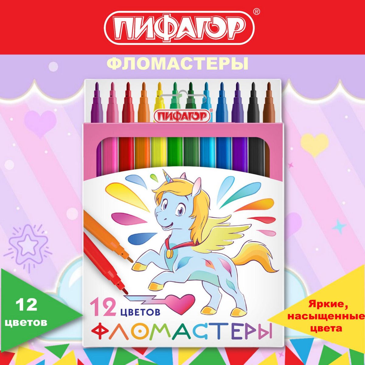 Фломастеры ПИФАГОР «ЕДИНОРОГ», 12 цветов, вентилируемый колпачок, 152448