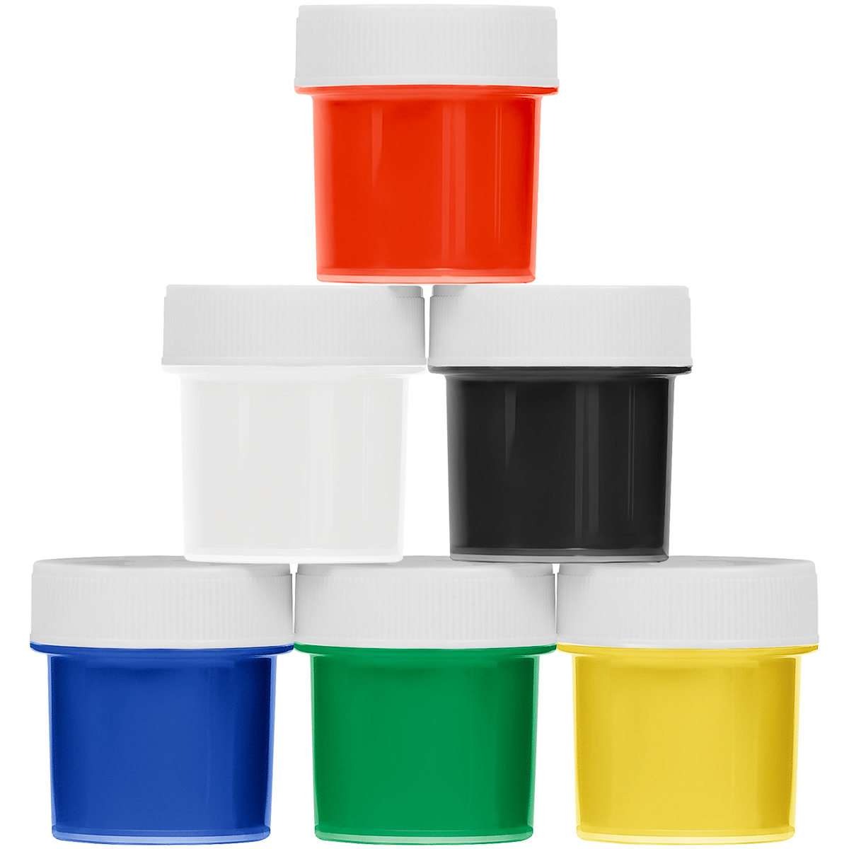 Гуашь фасуется в пластиковые герметичные баночки с завинчивающейся крышкой. Обладают хорошей кроющей способностью и чистотой цвета.