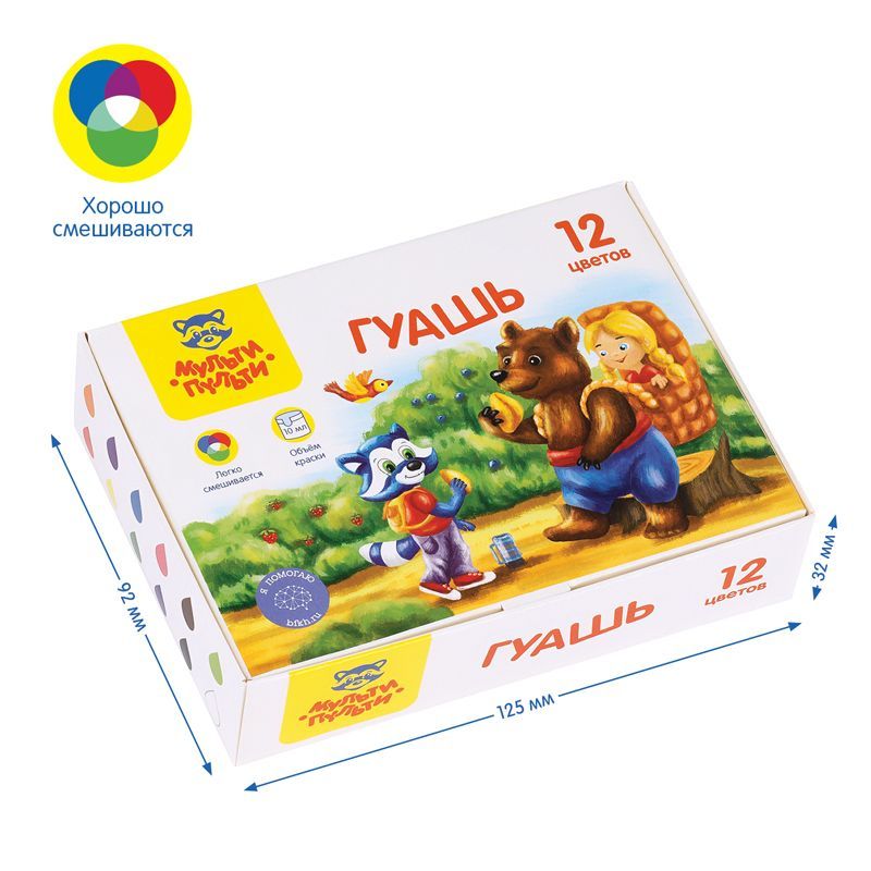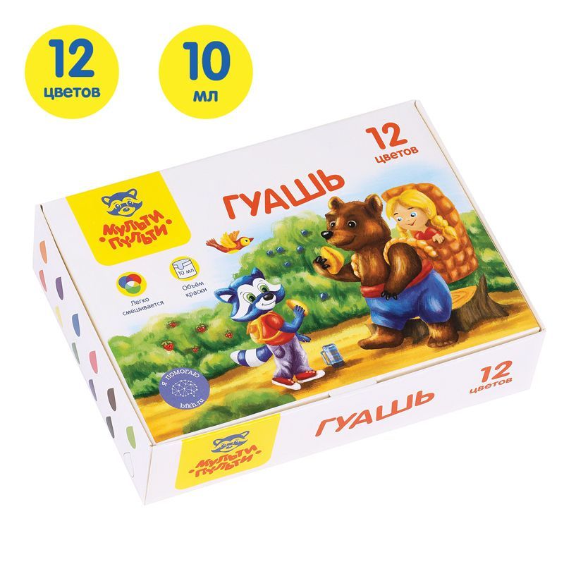Гуашь Мульти-Пульти «Енот в сказке», 12 цветов, 10мл, картон