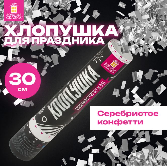 Хлопушка пневматическая ЗОЛОТАЯ СКАЗКА 30 см, фольга, прямоугольники, серебристый, 591477
