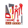 В комплекте 12 предметов: топор (16,5х8 см), пила (21х8 см), 2 гаечных ключа, 2 болта, 2 гайки, пассатижи, зажим, 2 детали, имитирующие древесину.