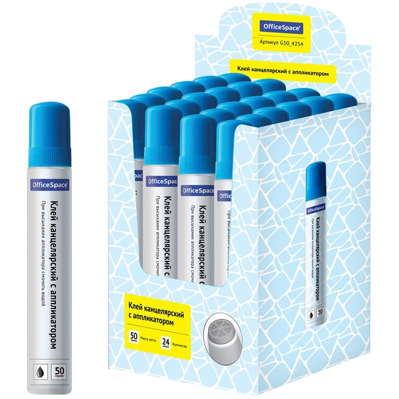 Клей канцелярский OfficeSpace, с аппликатором, 50г G50_4254