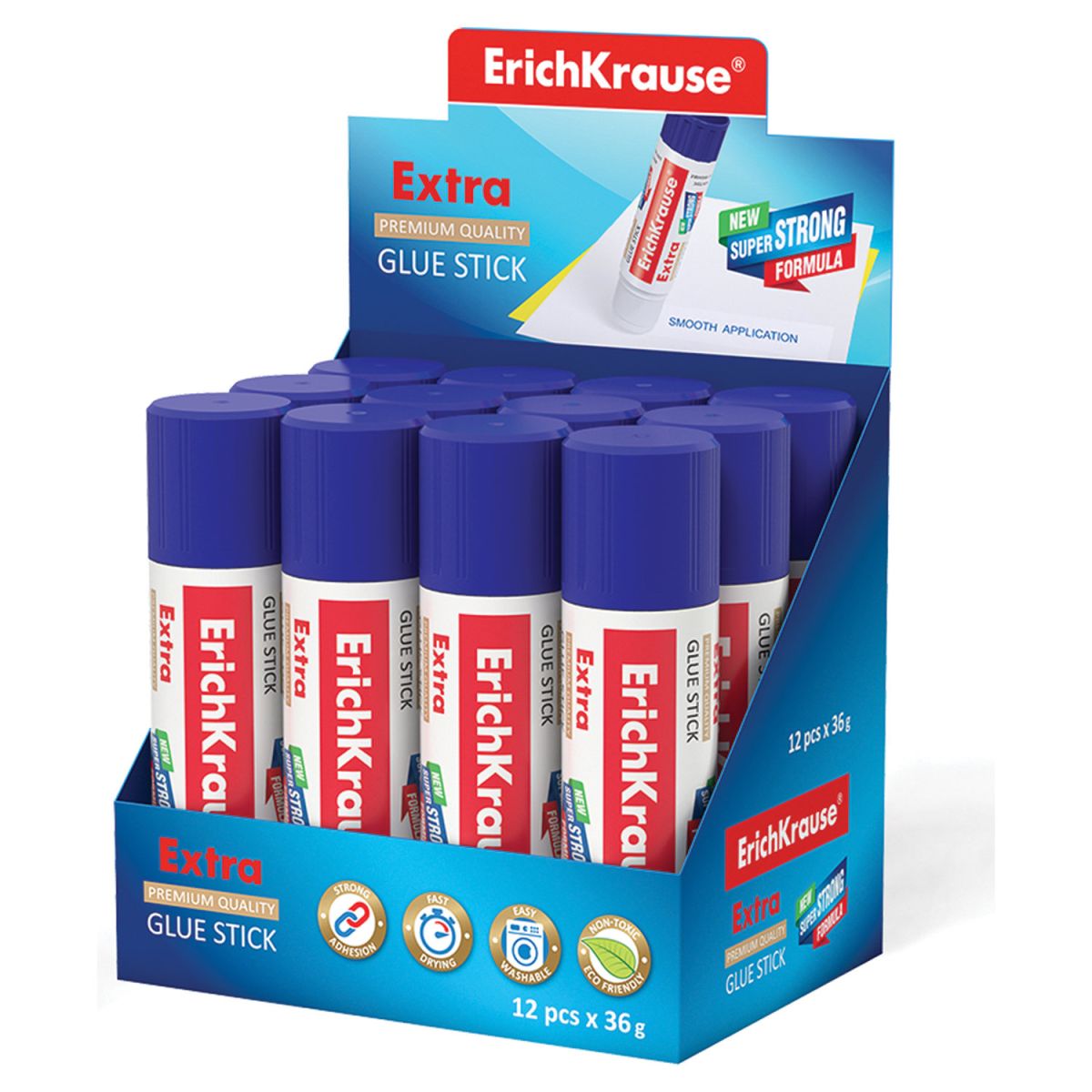 Клей-карандаш Extra c новой суперсильной формулой на PVP-основе с экономичным расходом, максимально быстрым и надежным склеиванием. Легко смывается водой. Не токсичен. Не содержит растворителя. Морозостоек. Подходит для бумаги, картона и ткани.