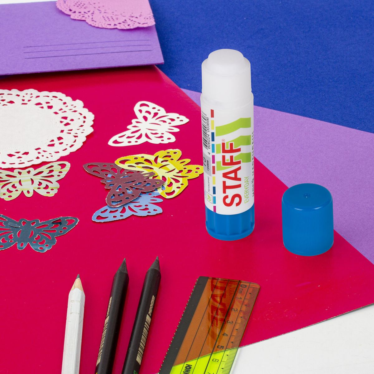 Клей-карандаш STAFF предназначен для склеивания бумаги, картона и фотобумаги. Прекрасный выбор для офиса, дома и школы.