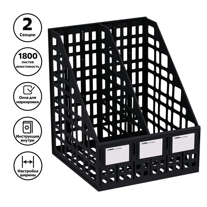 Лоток для бумаг вертикальный СТАММ, сборный, 2 отделения, черный