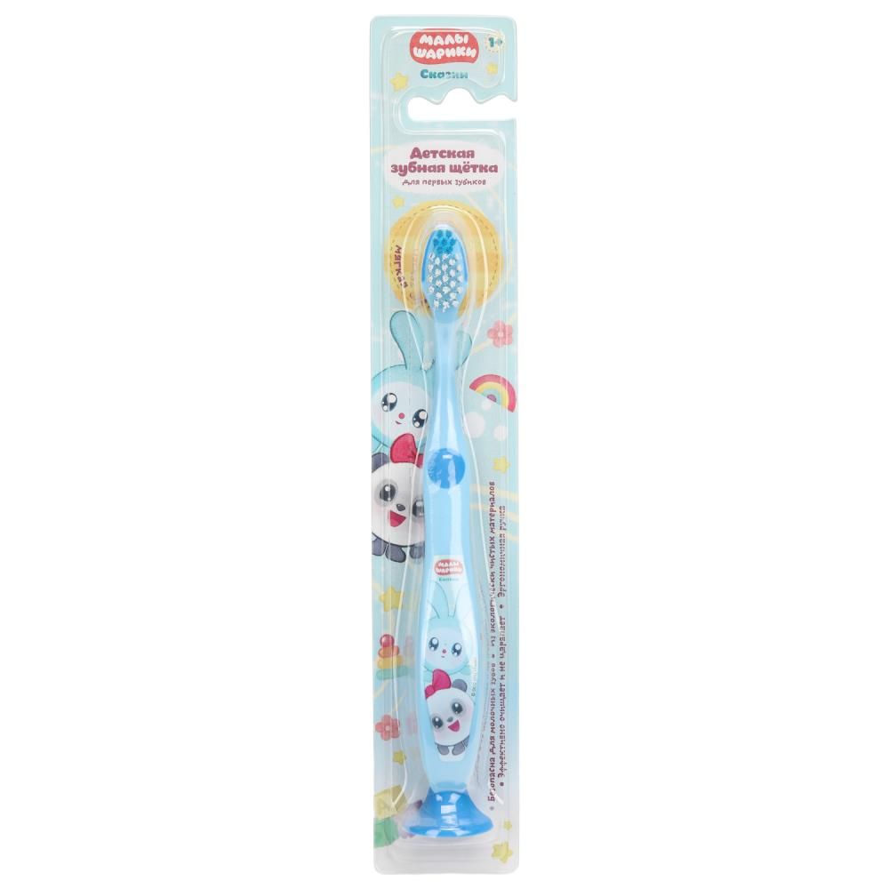 МАЛЫШАРИКИ Зубная щетка на присоске для детей голубая 93632-MAL
