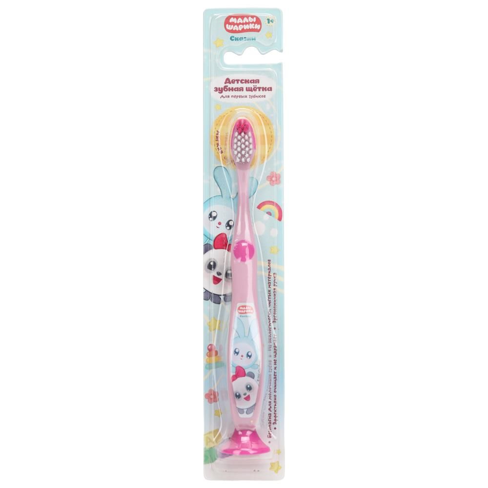 МАЛЫШАРИКИ Зубная щетка на присоске для детей розовая 93633-MAL