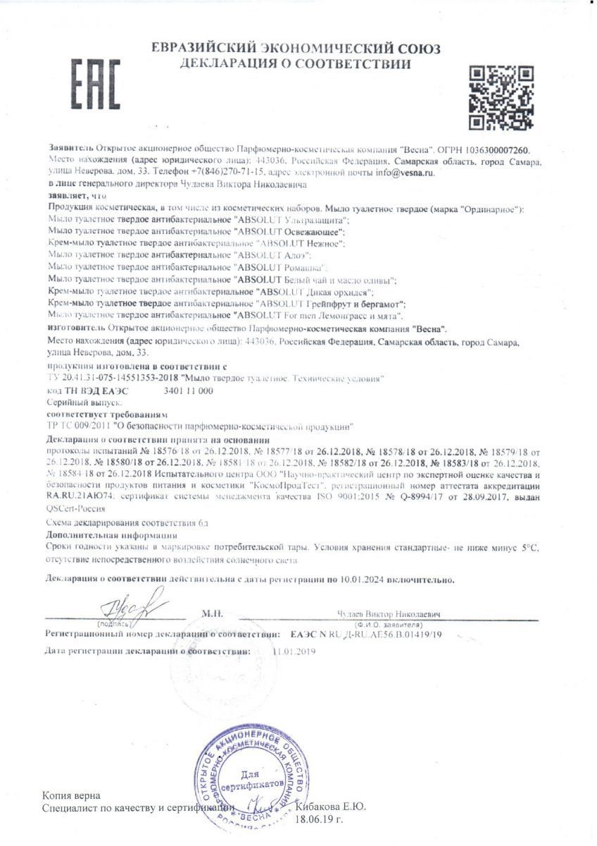 Мыло «Absolut 2 в 1» нежное  90г  6/72
