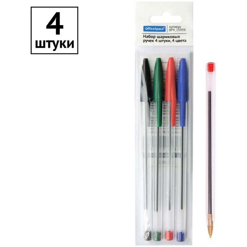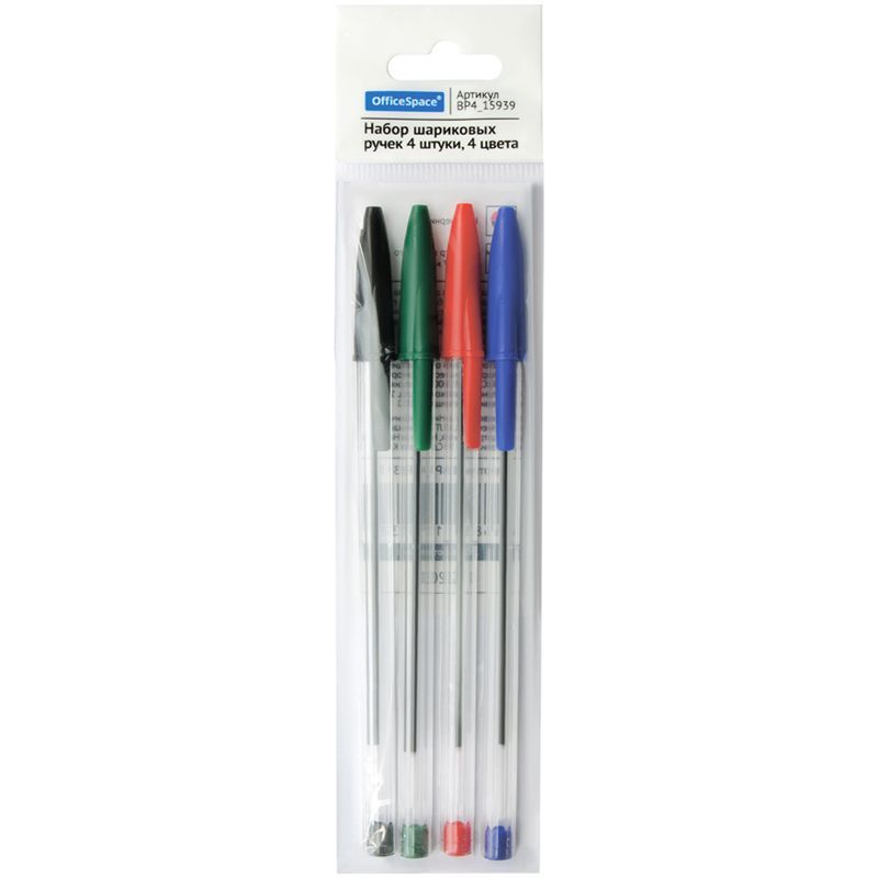 Набор шариковых ручек OfficeSpace 4шт., 04цв., 0,7мм, европодвес