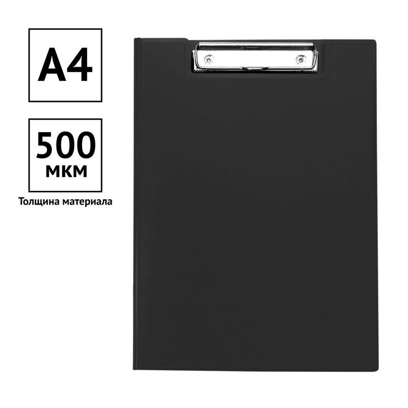 Папка-планшет с зажимом OfficeSpace А4, 500мкм, пластик, черный 245659