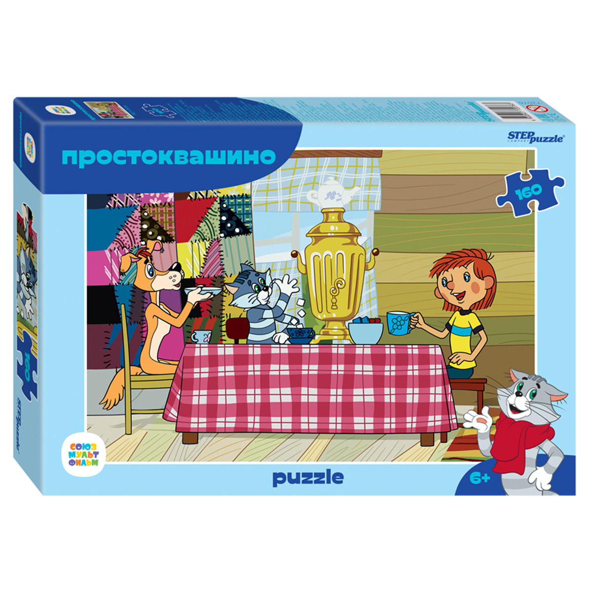 Пазл «Простоквашино» состоит из 160 деталей. На картинке представлена сцена чаепития. Кажется, наши герои обсуждают, когда пойдут искать клад.