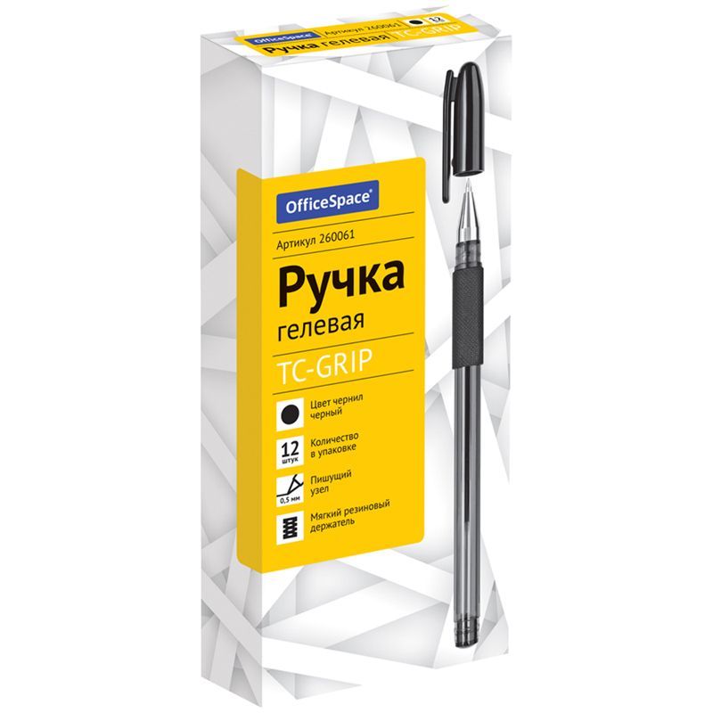 Ручка гелевая OfficeSpace «TC-Grip» черная, 0,5мм, грип 260061