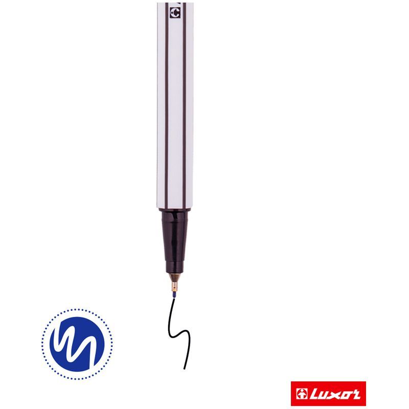 Капиллярная ручка Luxor Fine Writer - линер, тонкопишущий фломастер и чертежный инструмент одновременно. Диаметр пишущего узла - 0,8 мм, что говорит о том, что изделие подходит для любого типа письма. Толщина линии письма составляет 0,45 мм. Синяя ручка подходит для письма на бумаге, черчения, эскизов, рисунков в скетчбуке и рисунков на крафтовой бумаге, прорисовывания мелких элементов. Особенность капиллярных ручек - это умение подстраиваться под силу нажима, из-за чего напряжение на руку при письме не ощущается. Luxor Fine Writer пишут очень тонкой равномерной линией, оставляя четкий и достаточно контрастный след. Наконечник изготовлен из фетрового материала с добавлением акрила и имеет металлическую цангу. Светостойкие чернила на водной основе не выцветают под воздействием солнечных лучей и легко отстирываются с одежды. Капиллярные ручки Luxor до 7 дней не высыхает без колпачка, а при закрытом колпачке в течение 10 часов полностью восстанавливают свои свойства. Чернила мгновенно высыхают на бумаге, поэтому надписи и рисунки не размазываются. Набор из 10 ручек упакован в картонную коробку.