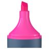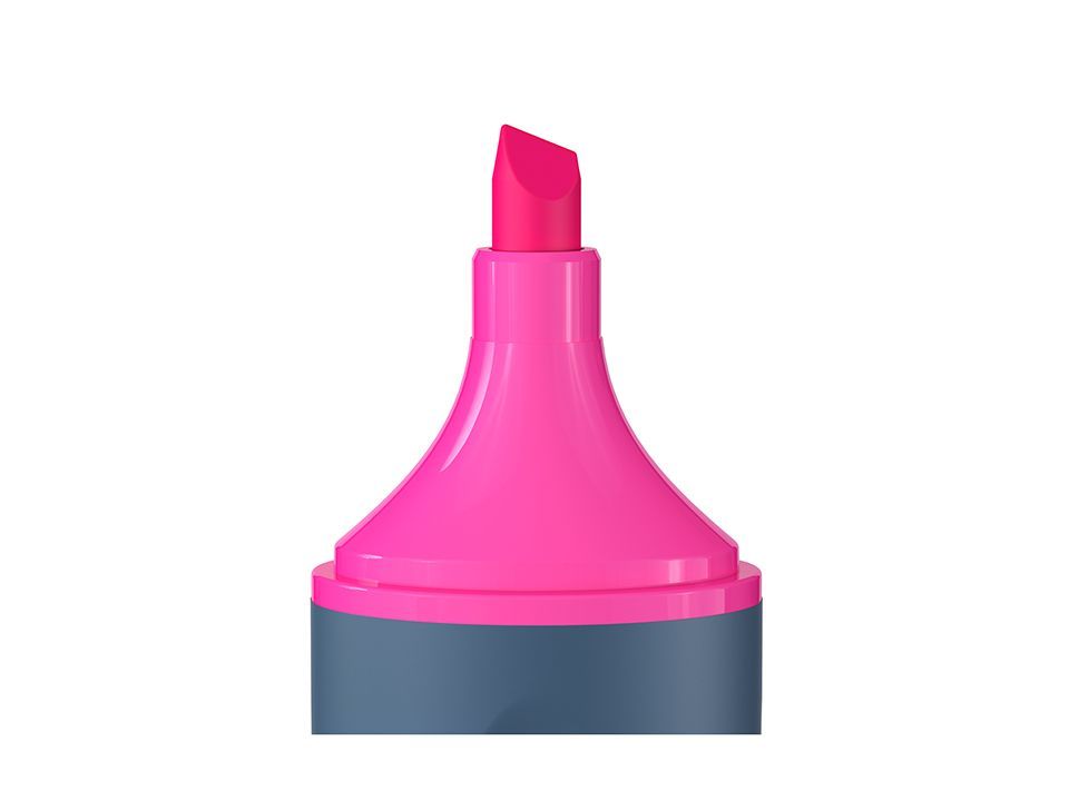 Текстовыделители с флуоресцентными чернилами на водной основе. Выполнены в оригинальном корпусе графитового цвета с сочетанием матовых и глянцевых поверхностей. Яркие элементы колпачка и нанесение соответствуют цвету чернил. Длина непрерывной линии письма - 300 метров. Скошенный наконечник с толщиной линии от 1 до 5 мм. Цвет чернил - розовый. Упакованы в картонную коробку-дисплей по 12 штук.