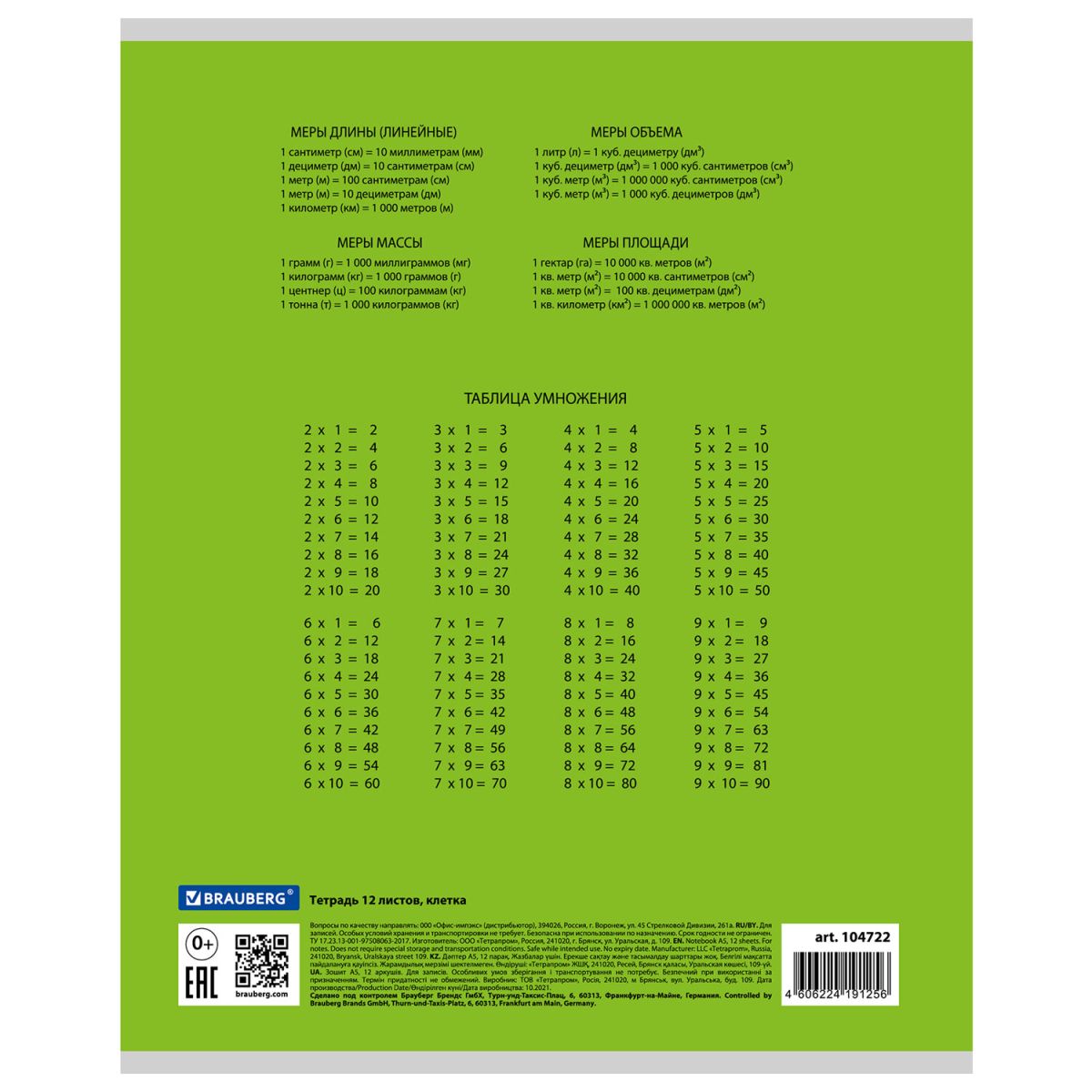 Тетрадь 12 л. BRAUBERG КЛАССИКА, клетка, обложка картон, ЗЕЛЕНАЯ, 104722