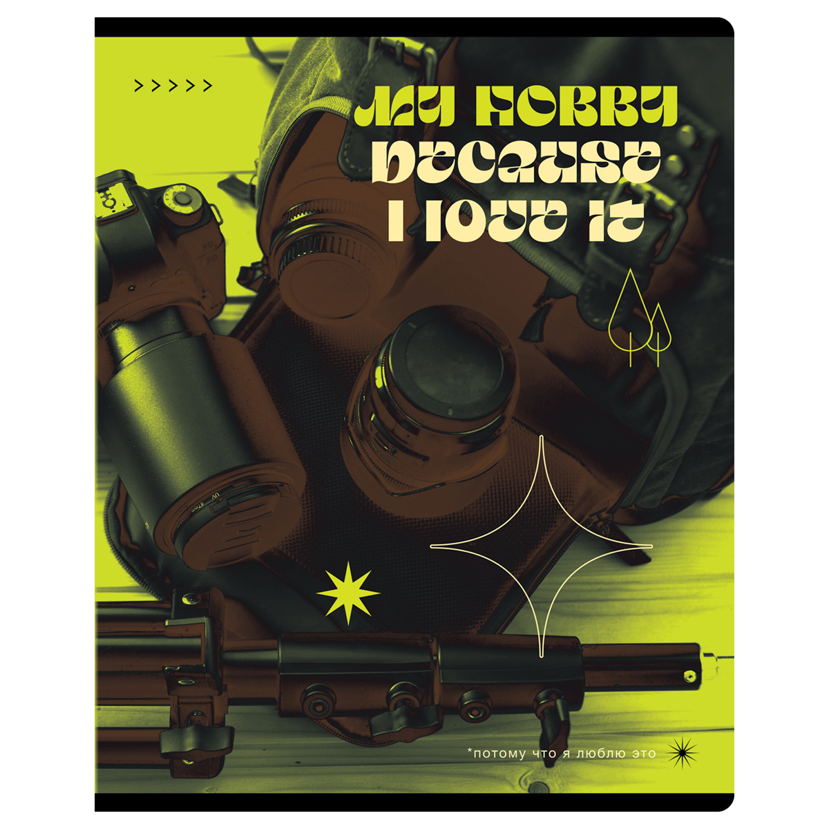 Тетрадь BG серии Мои увлечения в клетку. Формат А5. Вид крепления – скрепка. Внутренний блок – это 96 листов, офсетная бумага плотностью 65 г/м². Обложка выполнена из мелованного картона. Тетради с креативным дизайном отлично подходят для выполнения домашних и контрольных работ.