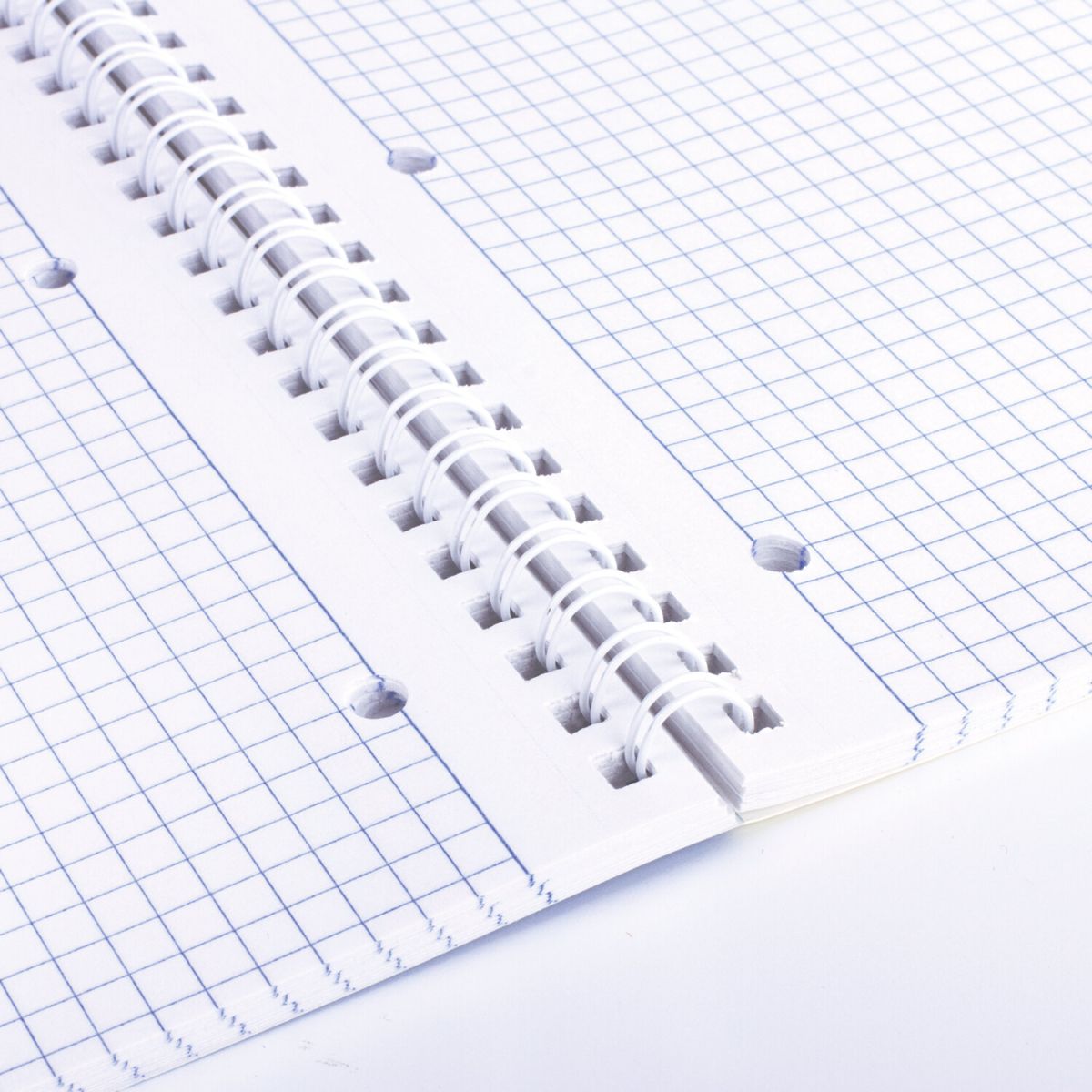Внутренний блок содержит 96 листов офсетной бумаги плотностью 65 г/м2. Обложка изготовлена из мелованного картона и покрыта матовой пленкой. Линовка - клетка. Гребень надежно скрепляет листы между собой. Белизна - 100%. Формат А4.Поставляется в нескольких вариантах цвета (без возможности выбора).