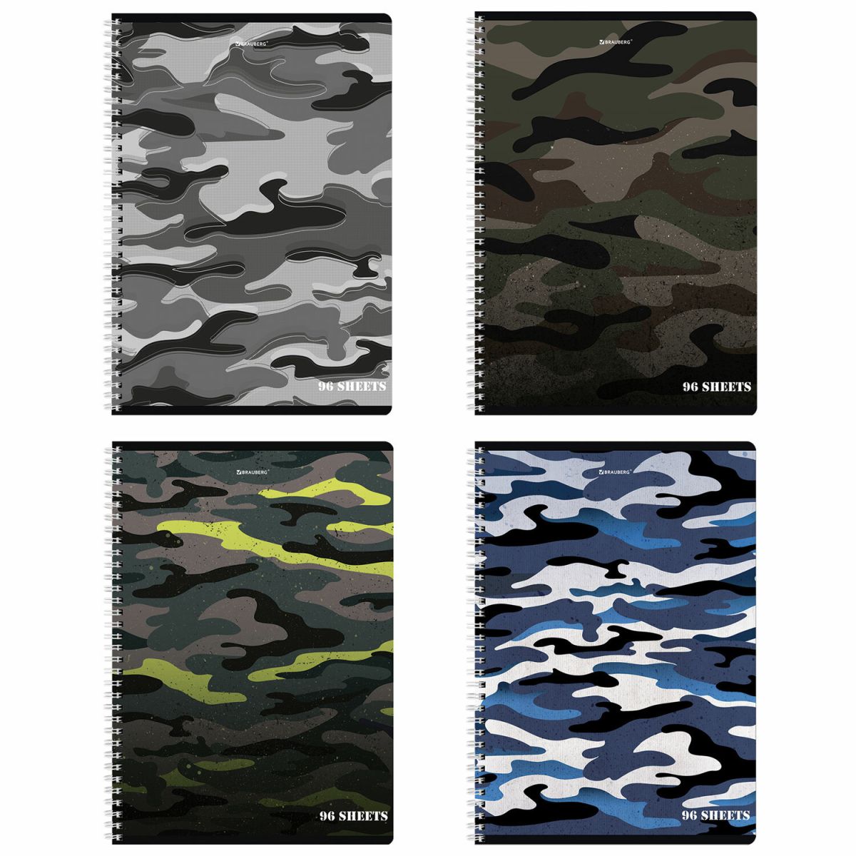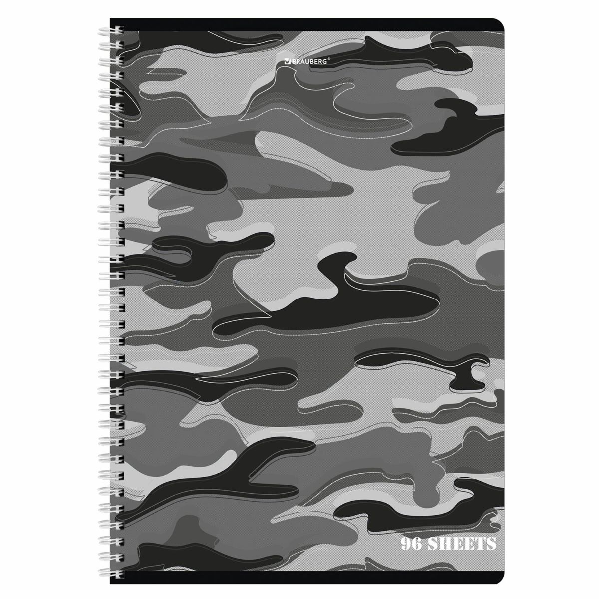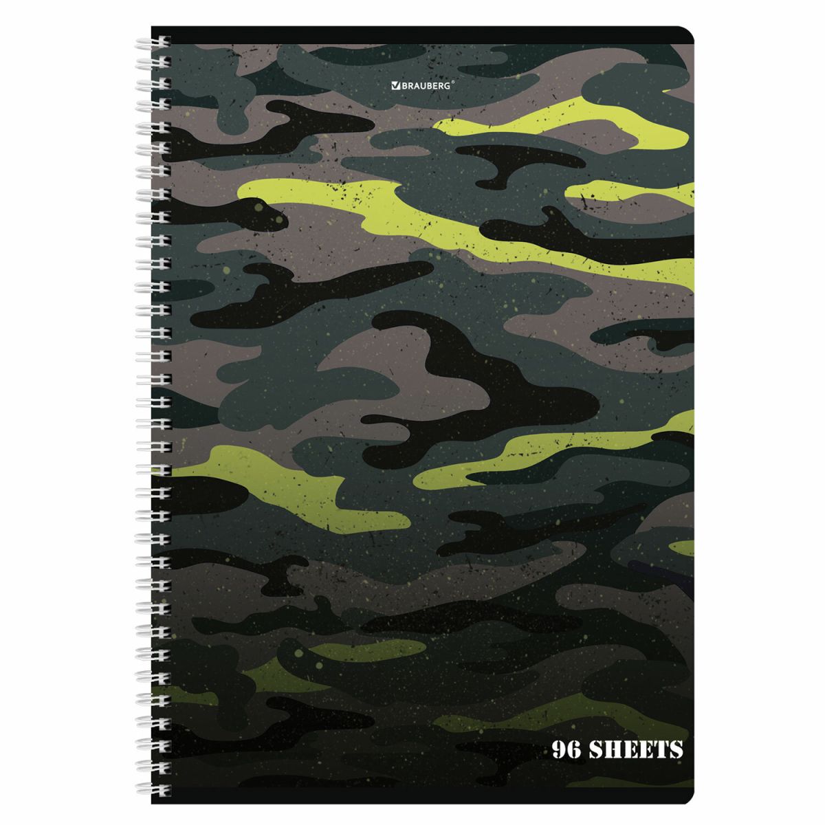 Тетрадь А4 96л. BRAUBERG гребень, клетка, обложка картон, Military, 404057