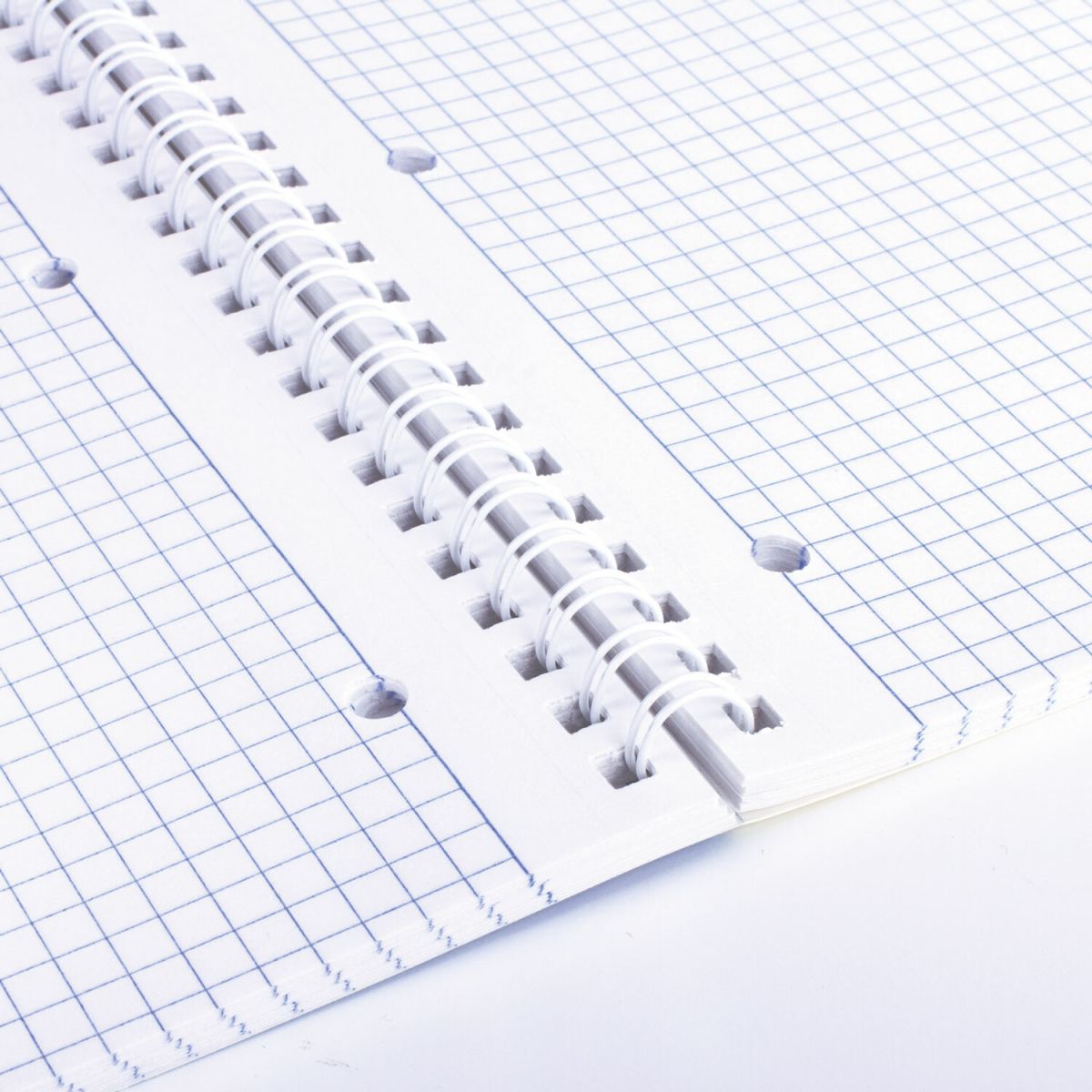 Внутренний блок содержит 96 листов офсетной бумаги плотностью 65 г/м2. Обложка изготовлена из мелованного картона. Линовка - клетка. Гребень надежно скрепляет листы между собой. Белизна - 100%. Формат А4.Поставляется в нескольких вариантах цвета (без возможности выбора).