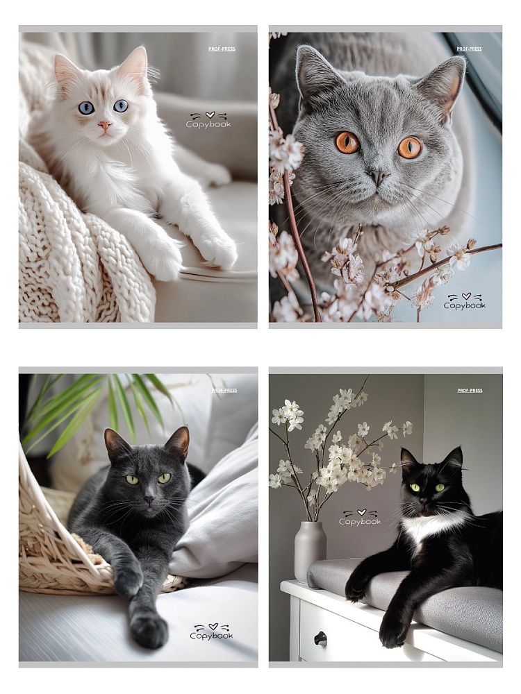 Тетрадь КЛЕТКА 96л. РАЗНЫЕ ДОМАШНИЕ КОТЫ (96-4319) (цвет.мелов.обл.)