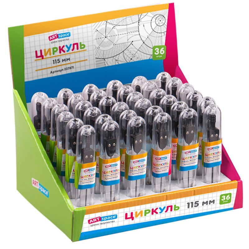 Циркуль ArtSpace металлический, 115мм, пластиковый пенал 227871