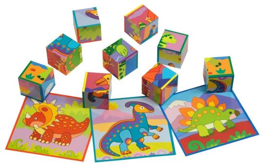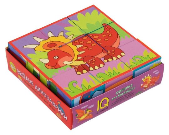 Комплект из 9 кубиков разработан специально для детей от 4 лет. Ребёнку нужно сложить картинку из 9 фрагментов. В качестве подсказки даны 6 картинок с изображением динозавров. Это одна из лучших игр для развития вашего ребёнка. Углы кубиков во время игры активизируют речевые рецепторы на ладошках. Картинки яркие, а фон равномерный и контрастный. Все образы простые и понятные, их легко узнать и назвать. Рисунок собирается по специальной методике с опорой на картинки-основы. Кубики помогает удержать прочный поддончик. Такая игра не надоедает, малыш видит результат и занимается с удовольствием. А ещё маленькое чудо в подарок! Сложите картинку и переверните все кубики - смотрите на новую картинку!