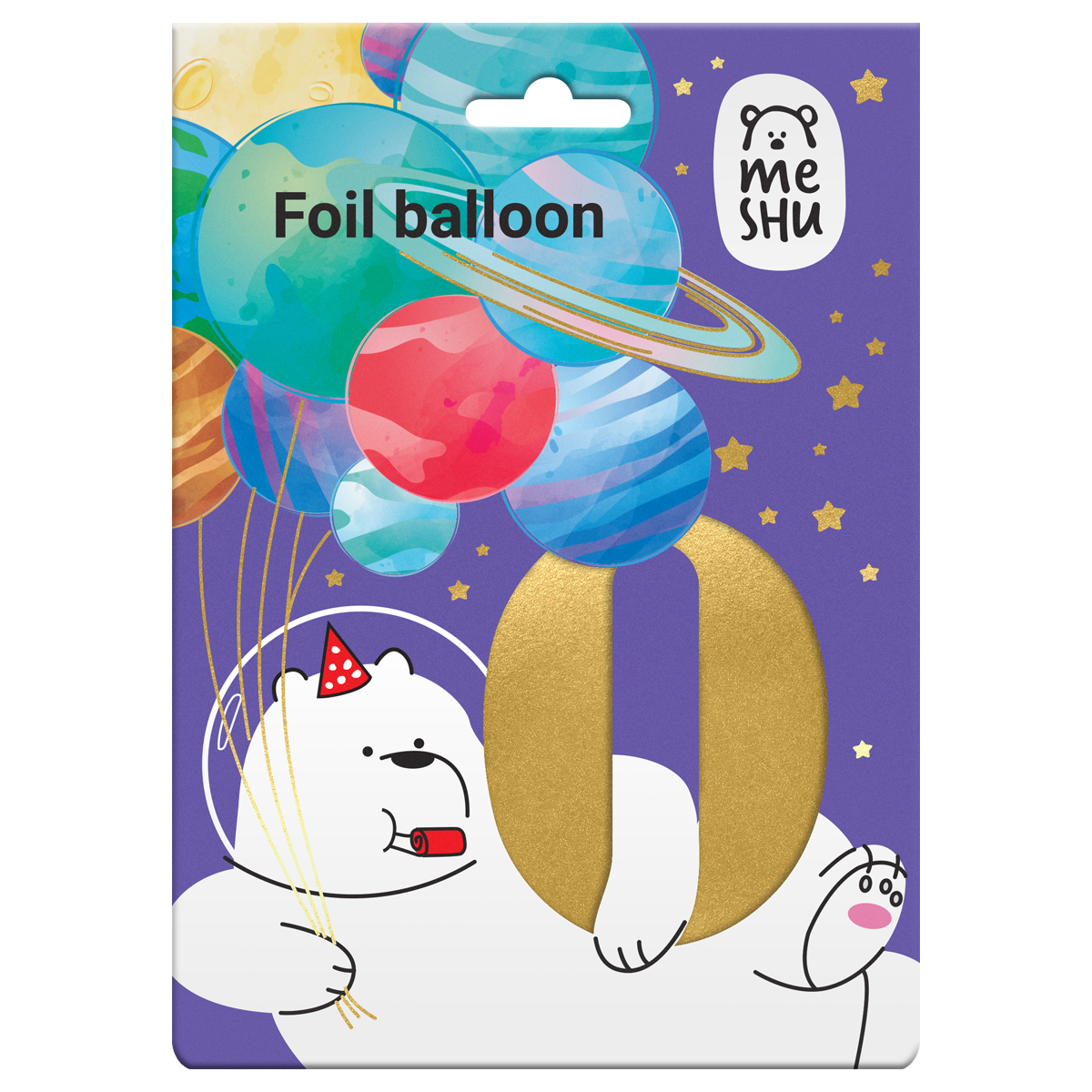 Воздушный шар, 40", MESHU, цифра 0, золотой, фольгированный MS_51224