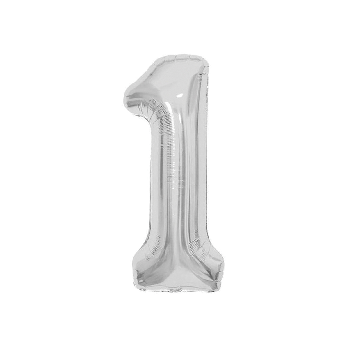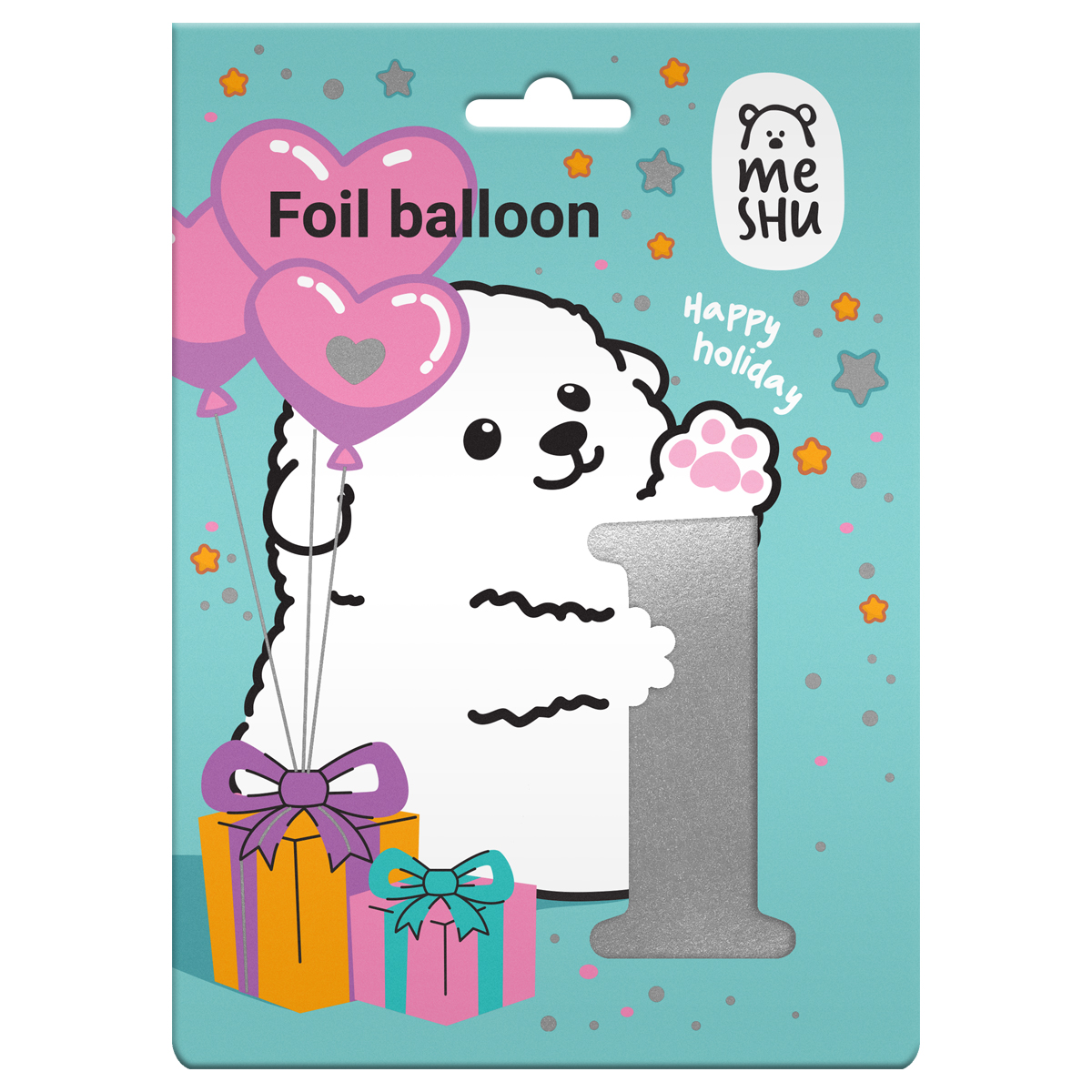 Воздушный шар, 40", MESHU, цифра 1, серебро, фольгированный MS_51225