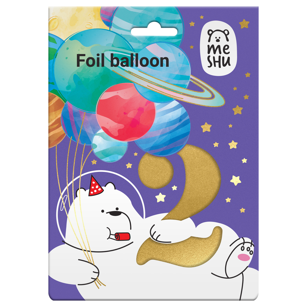 Воздушный шар, 40", MESHU, цифра 2, золотой, фольгированный MS_51216