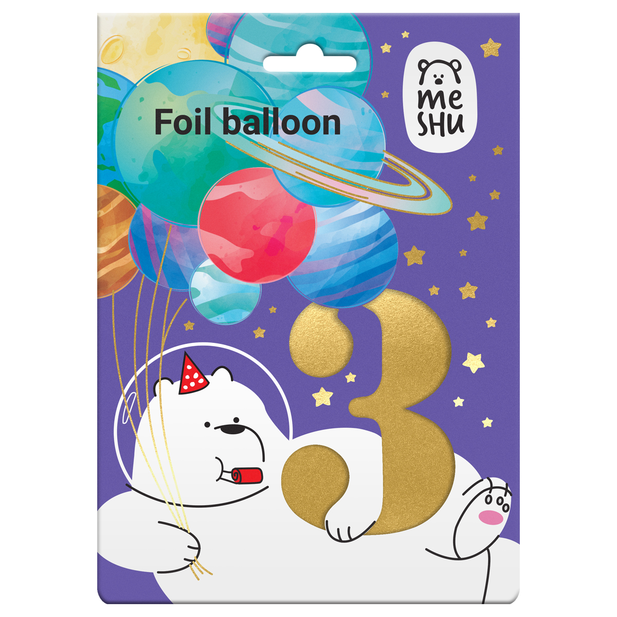 Воздушный шар, 40", MESHU, цифра 3, золотой, фольгированный MS_51217