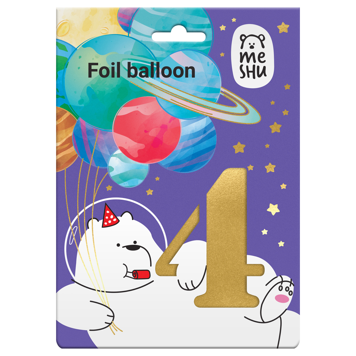 Воздушный шар, 40", MESHU, цифра 4, золотой, фольгированный MS_51218
