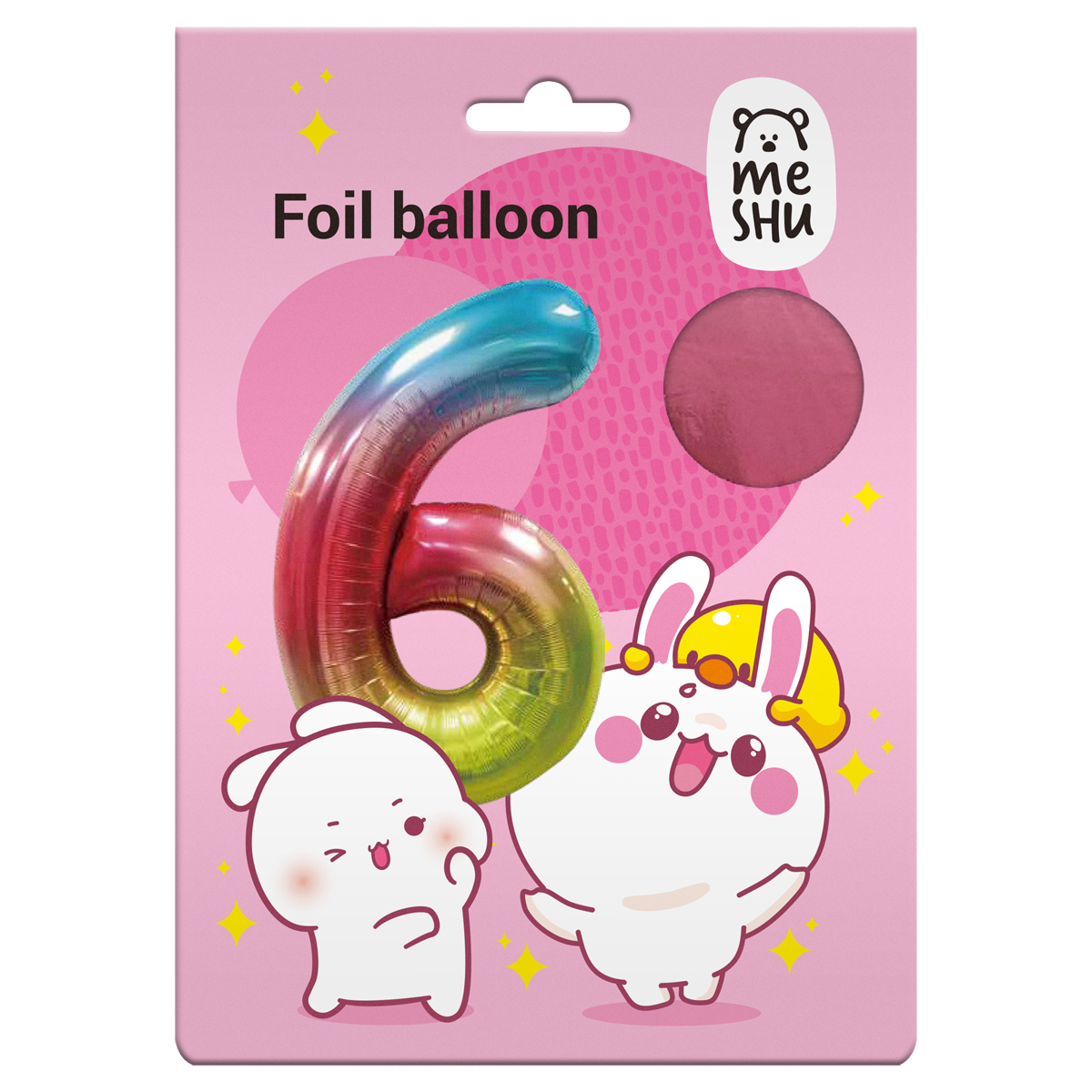Фольгированный воздушный шар MESHU в форме цифры «6» поможет оформить помещение для проведения тематической вечеринки, детского или корпоративного праздника. Он также подойдёт в качестве дополнения к подарку имениннику. Размер изделия — 40*100 см.