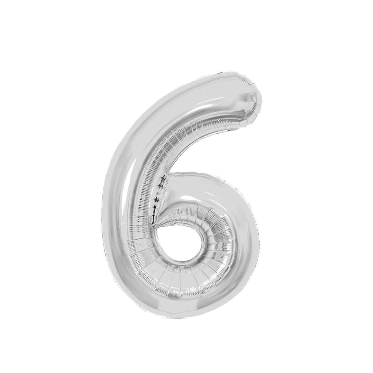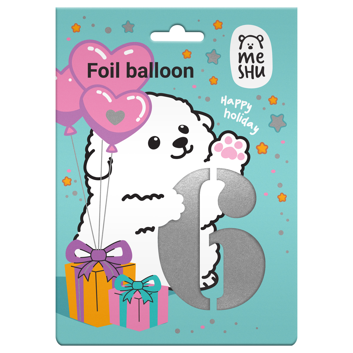 Воздушный шар, 40", MESHU, цифра 6, серебро, фольгированный MS_51230