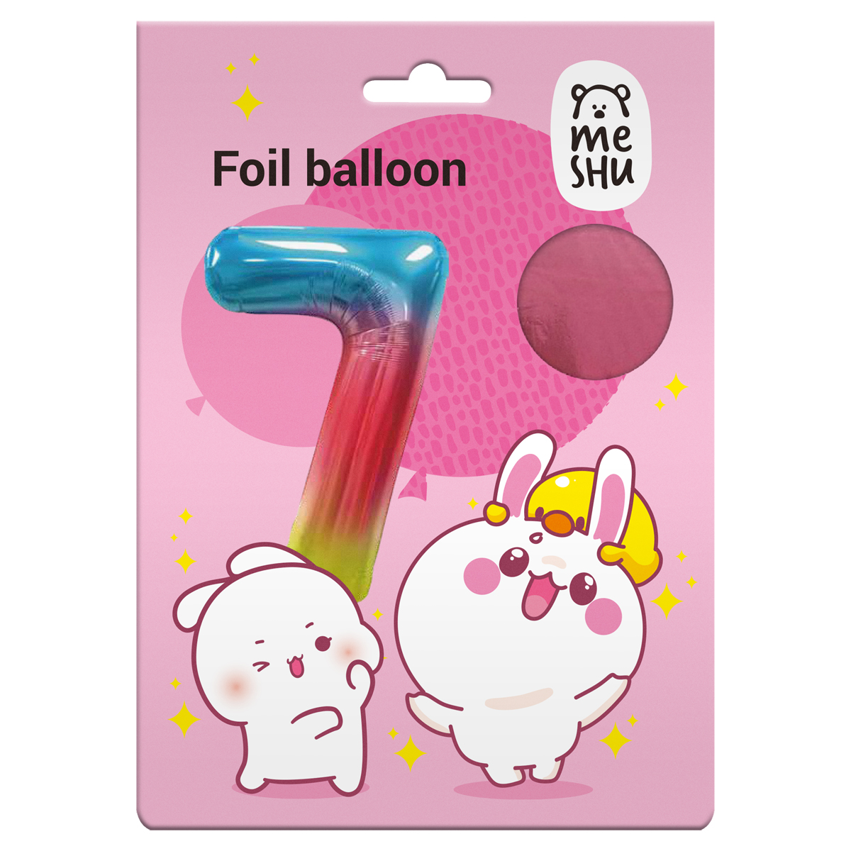 Воздушный шар, 40", MESHU, цифра 7, розовый, фольгированный MS_51241