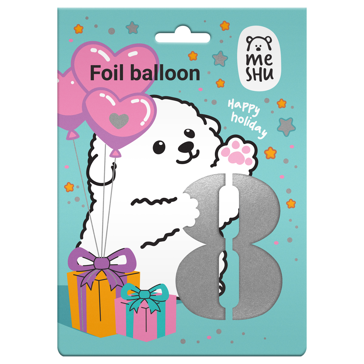 Фольгированный воздушный шар MESHU в форме цифры «8» поможет оформить помещение для проведения тематической вечеринки, детского или корпоративного праздника. Он также подойдёт в качестве дополнения к подарку имениннику. Размер изделия — 40*100 см.