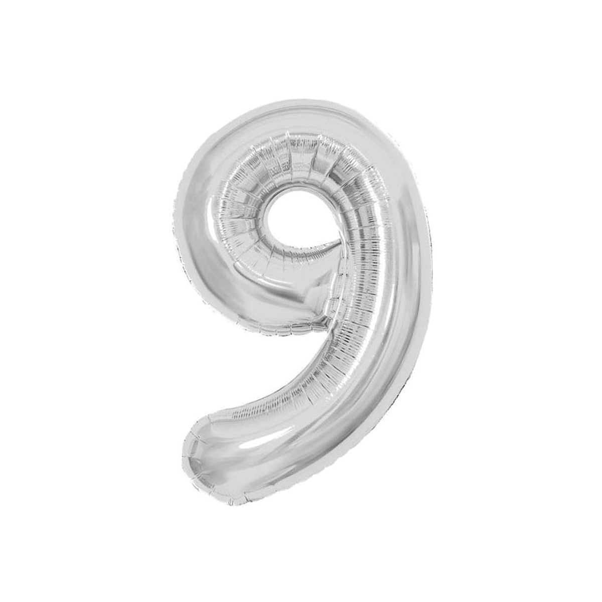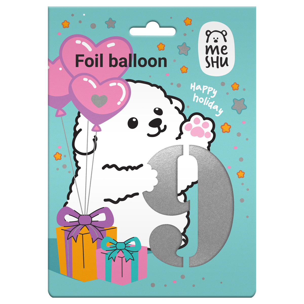 Воздушный шар, 40", MESHU, цифра 9, серебро, фольгированный MS_51233